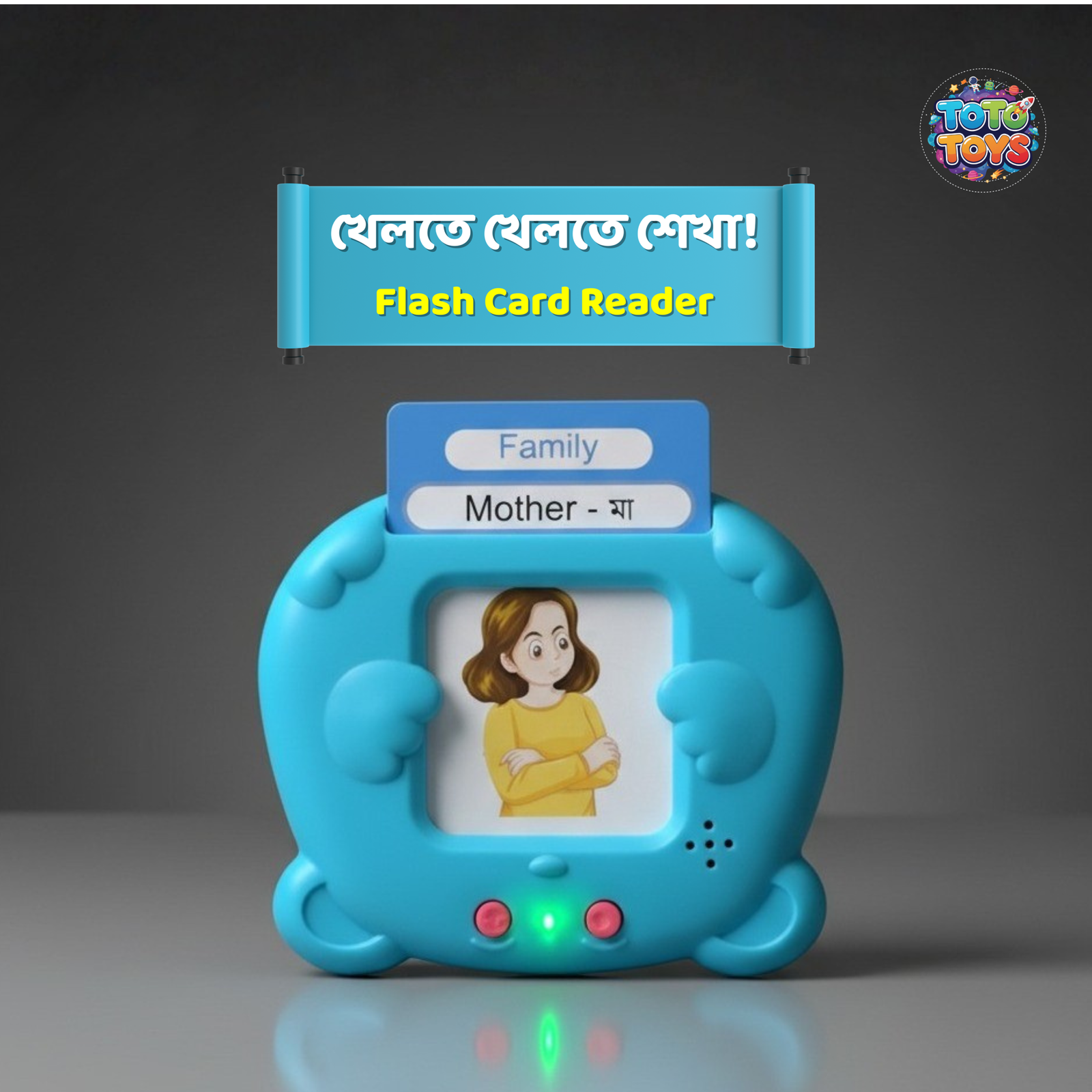 কার্ড ঢোকাতেই বাংলা–ইংরেজি–আরবি অক্ষর, শব্দ আর ছবি সব উচ্চারণ করে শুনিয়ে দেবে! বাচ্চা খেলতে খেলতেই শিখে ফেলবে সব।